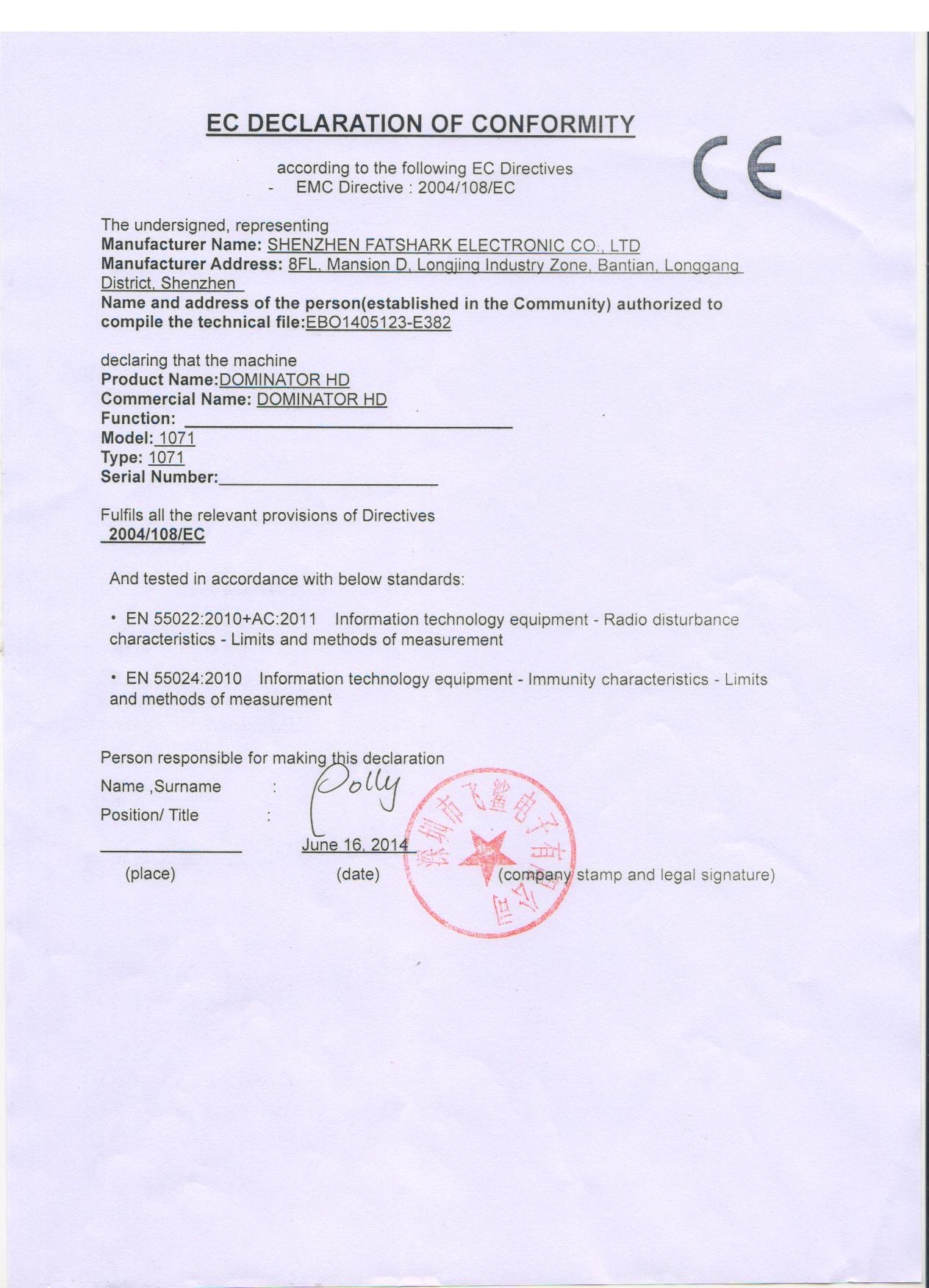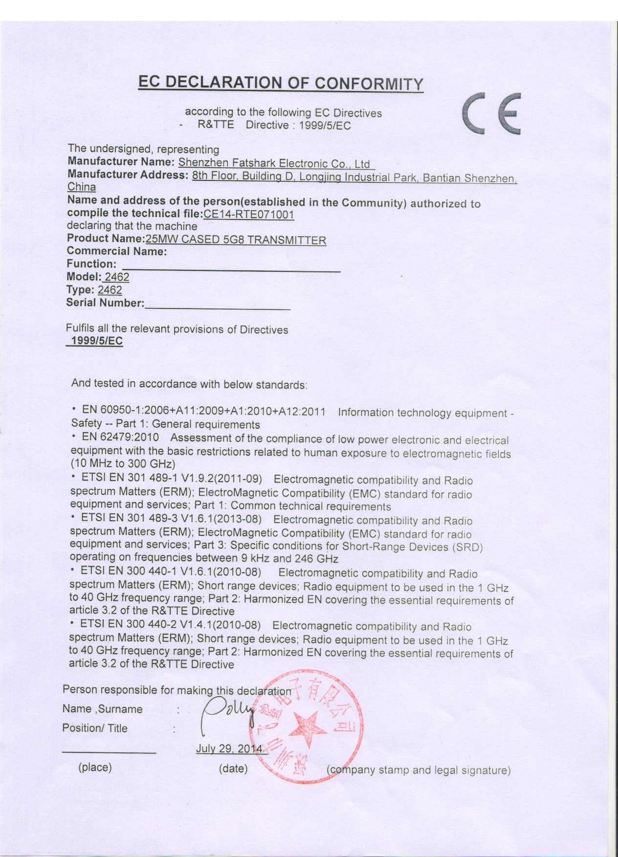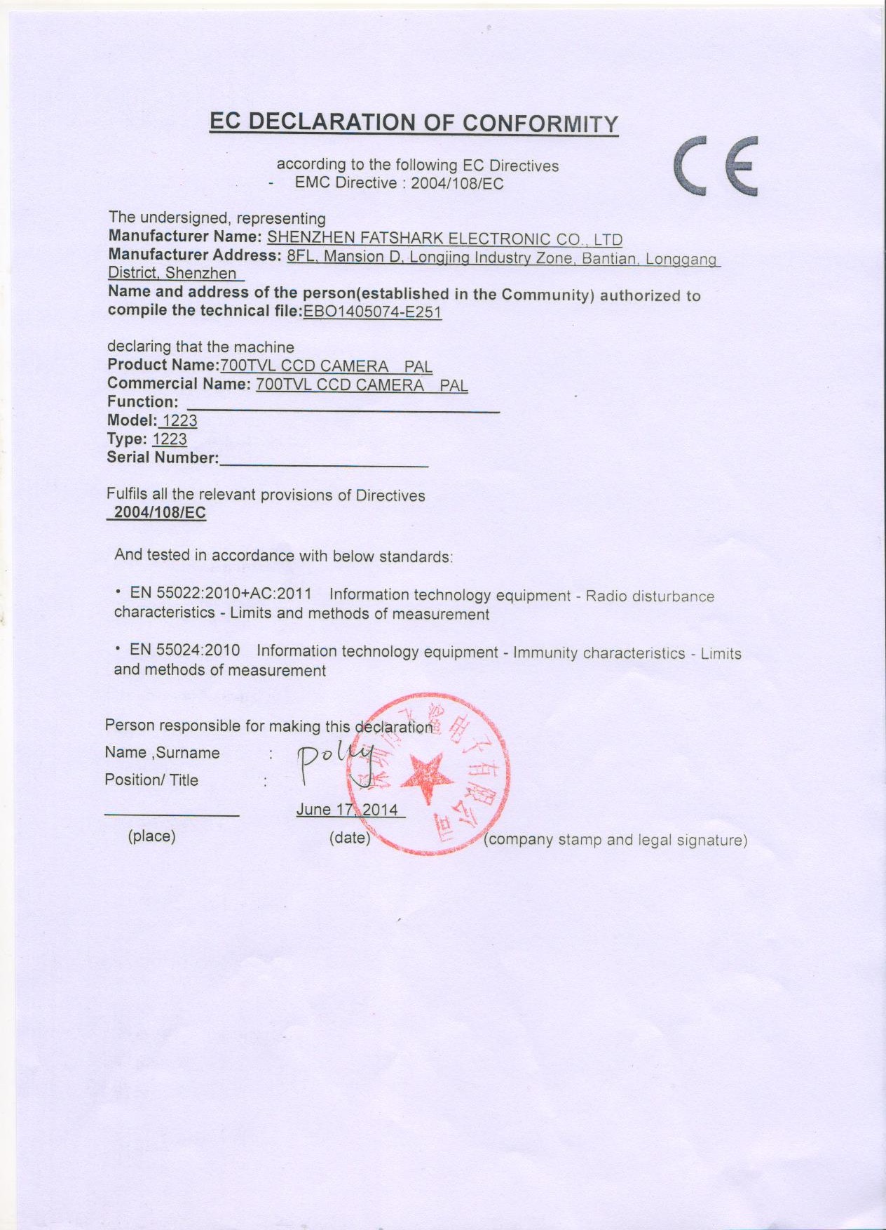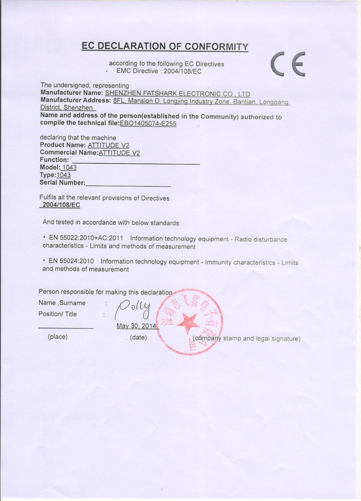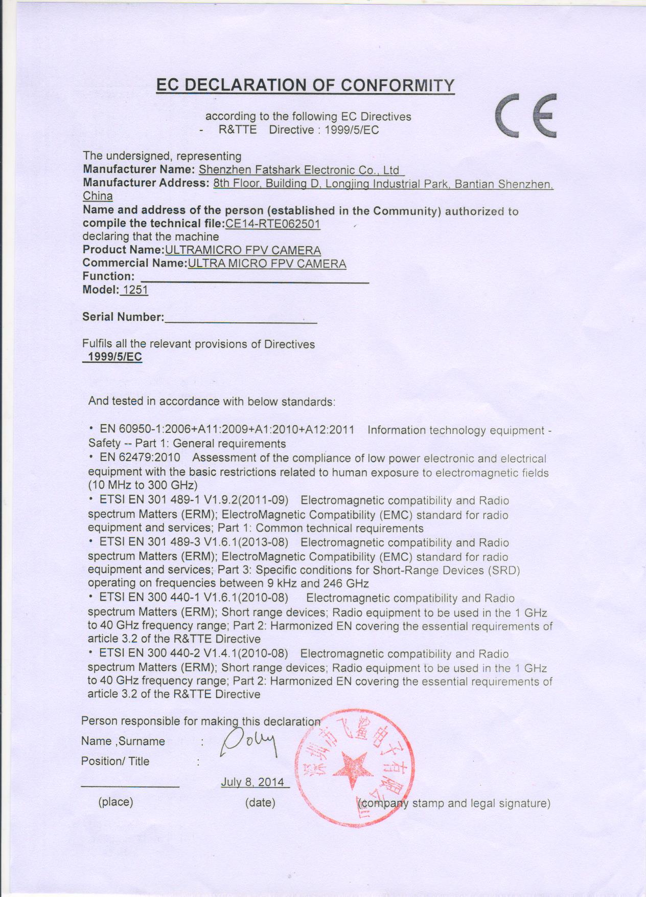 - Declaration of Conformity - BLH03201 Flight Control FPV