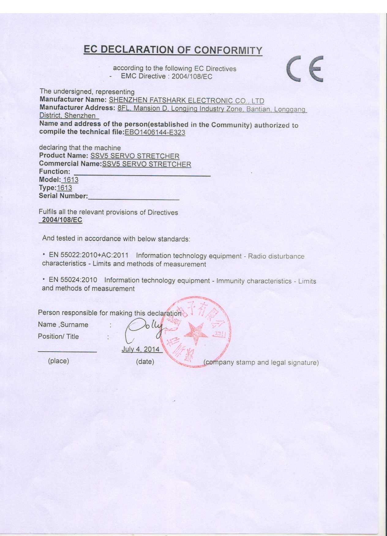 - Declaration of Conformity - SPMXSE1160M - Firma 160 Amp Smart Brushless Marine ESC