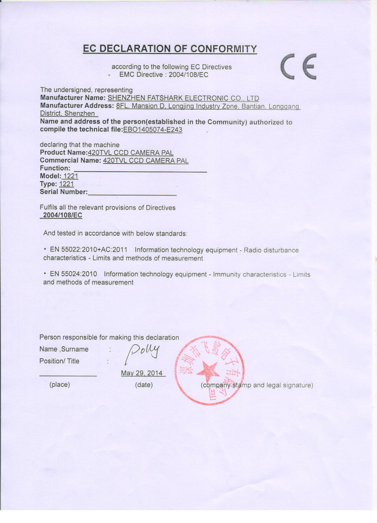 - Declaration of Conformity - Yuneec_TYPHOON_ Series_CE_DOC_20150915