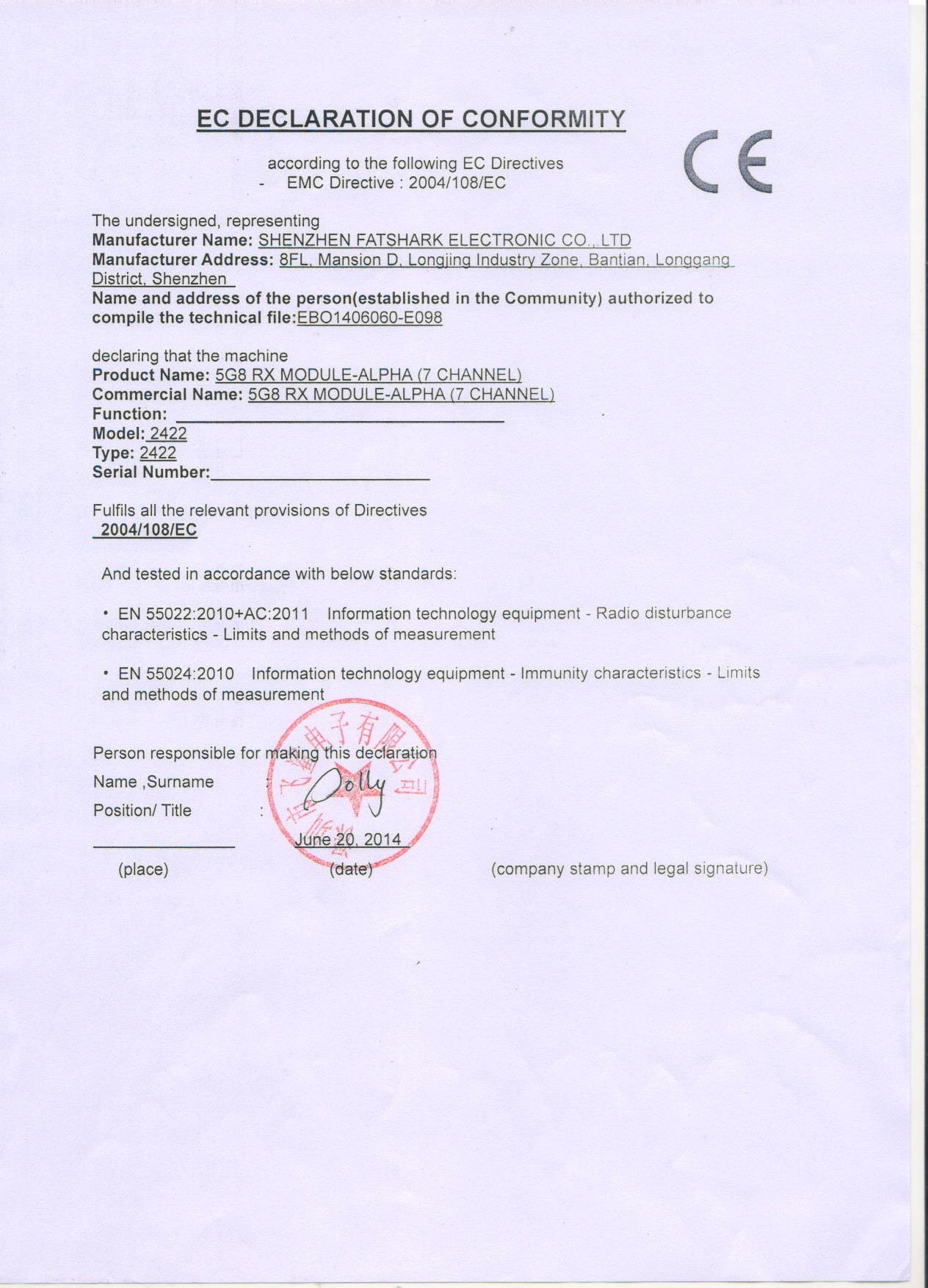 - Declaration of Conformity - SR6100AT 6 Channel DSMR AVC-Telemetry Receiver