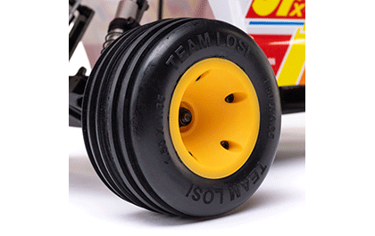 - Ribbed front and spiked rear tires reproduce the style of the original 1990 JRXT.