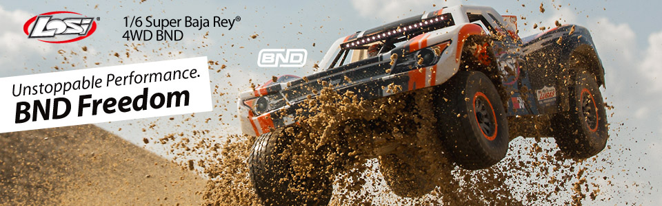 - (1) Losi® Super Baja Rey® BND with AVC® Technology: 1/6-Scale 4WD Desert Truck