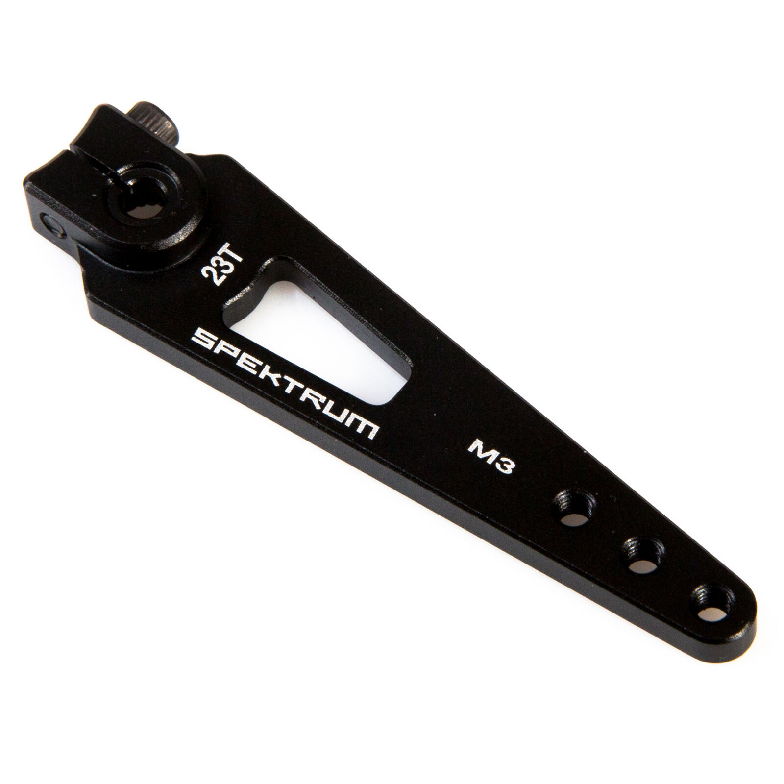 Spektrum Heavy Duty Aluminum Servo Arms are the perfect companion to your Spektrum outfitted model. Crafted with aircraft grade 7075-T6 CNC machined aluminum, these servo arms are strong enough to take the most brutal of abuse. And to ensure a tight link to your servo, the 23T spline mount is reinforced with a clamping design to prevent slipping. Along with a functional yet stylish finish and design, the Spektrum Heavy Duty Aluminum Servo Arms are sure to make your model stand out in the crowd.