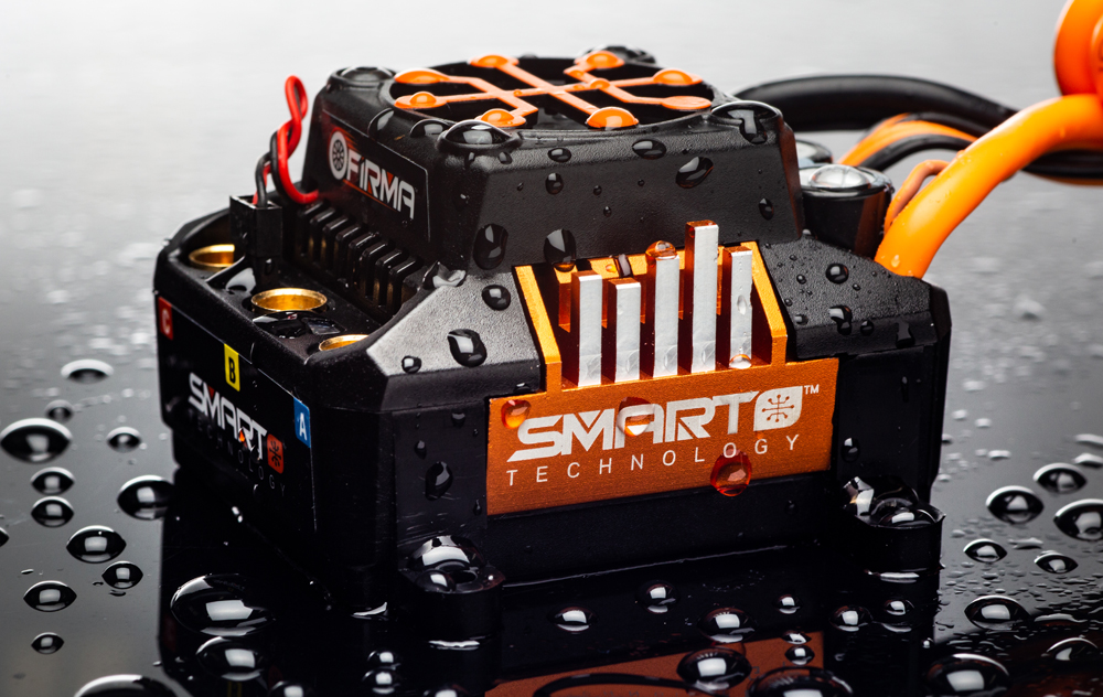 The all-weather, waterproof design of Spektrum™ Firma™ Smart ESCs allows them to perform in nearly any terrain under almost any conditions. This extends to the built-in 4-channel receiver, keeping you going through dust, gravel, snow, and water.