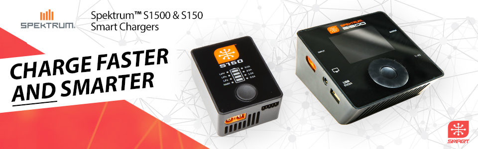 If you use large batteries that require high charging power, the 500W Spektrum™ S1500 DC Smart Charger is up to the challenge. Compact enough to carry in a pocket or field bag, the S1500 easily goes with you to the field, track, or any place where you need to charge your LiPo and NiMH batteries.